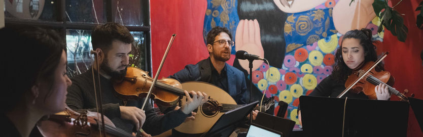 Elizabeth Jones, violin; Dominique Valenzuela, violin; Hadi Eldebek, oud and vocals; Rebecca Leilah Chaqor, viola; Sarah Overton, cello; Michelle Rofrano, conductor and Artistic Director of PROTESTRA